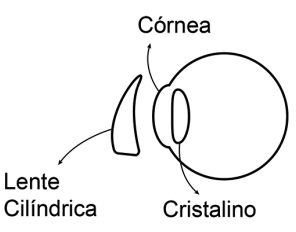 Consiste em uma deformação na córnea, a pessoa que possui Astigmatismo observa os objetos embaçados. A correção do Astigmatismo se dá através de lentes cilíndricas.