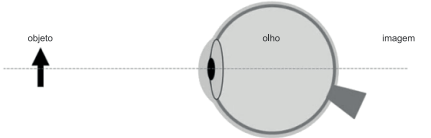 a) Com base no esquema do olho abaixo, desenhe a imagem do objeto (seta) formada em um olho hipermetrope.