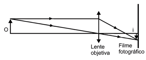 A máquina fotográfica é composta de uma lente objetiva que forma uma imagem no chamado filme fotográfico. A imagem será invertida e real.