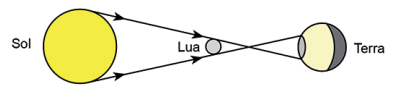 O eclipse do Sol ocorre na Lua nova e, neste caso, a Lua projeta sobre a Terra uma região de sombra projetada, eclipse total, e uma região de penumbra projetada.