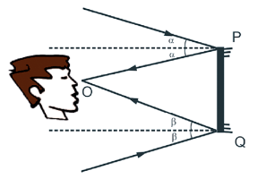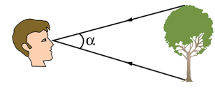 O ângulo visual representado na figura a seguir por α, corresponde ao ângulo formado pelos raios que ligam as extremidades do objeto e os olhos do observador.