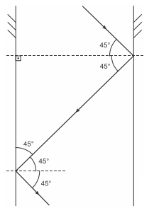 De acordo com a figura, podemos concluir que o ângulo de reflexão no segundo espelho é de 45º.