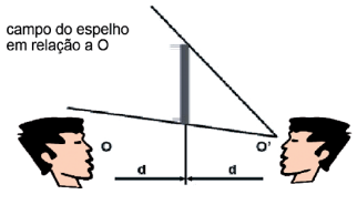 O campo visual corresponde à área que pode ser visualizada pelo observador olhando para o espelho.