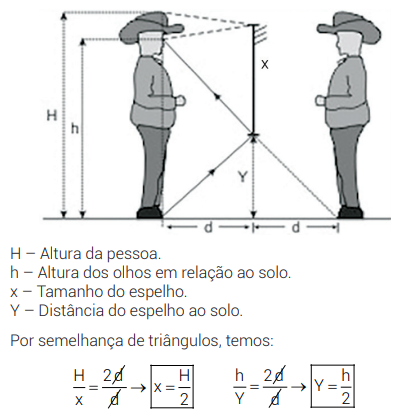 Vamos obter o tamanho mínimo do espelho para que uma pessoa possa se ver por inteiro.