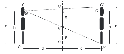 ΔGMN ≈ ΔGC’P’ ⇒ x/d = H/2d ⇒ x = H/2 = 1,70/2 ⇒ x = 0,85 m.