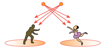 A figura anterior, em que duas áreas são iluminadas por holofotes, exemplifica bem a independência dos raios luminosos.